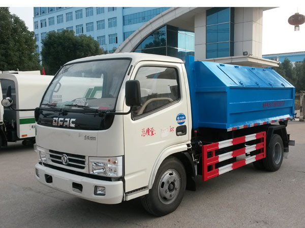 组成部分:国内知名品牌东风原装底盘(全国联保)、垃圾箱、取力器、多路换向阀、拉臂、液压系统、操作系统等组成。(举升油缸及锁紧油缸系我厂自行研发生产的双作用油缸。)