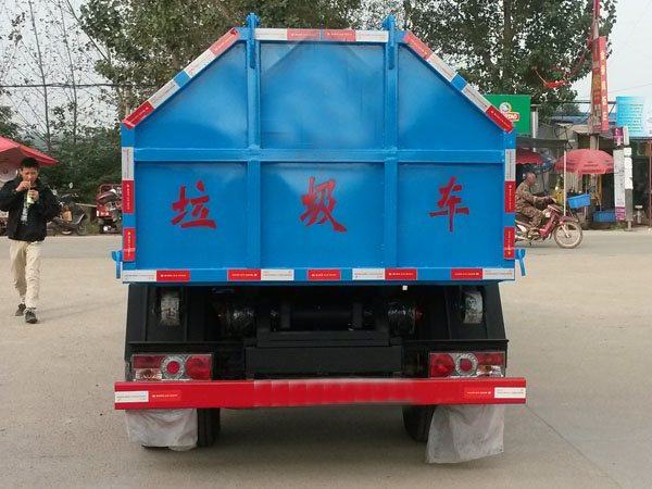 液压系统:由油箱、油泵、多路换向阀、液压缸、滤油器和管路组成,该系统能实现装卸垃圾的各种专用功能。