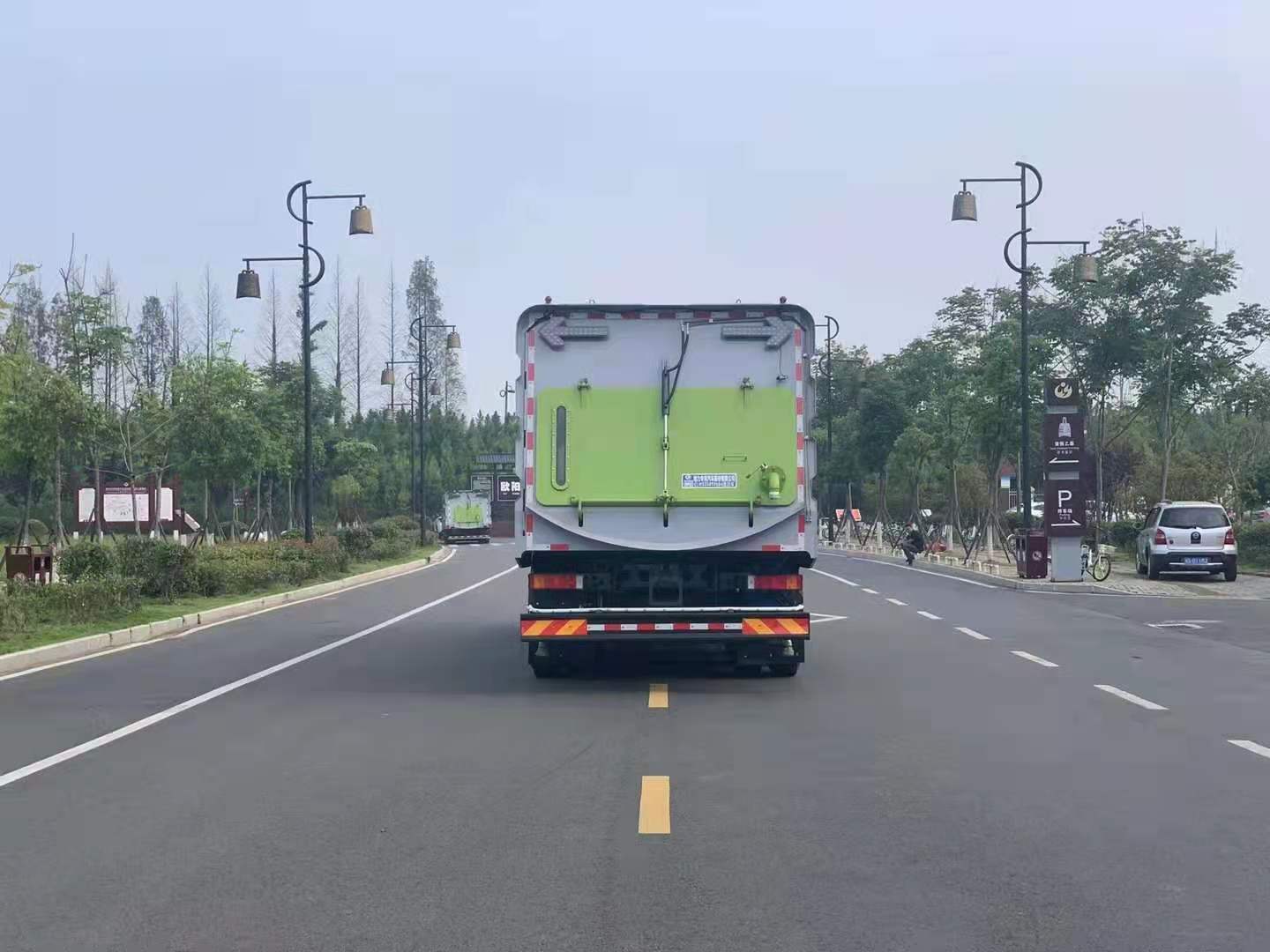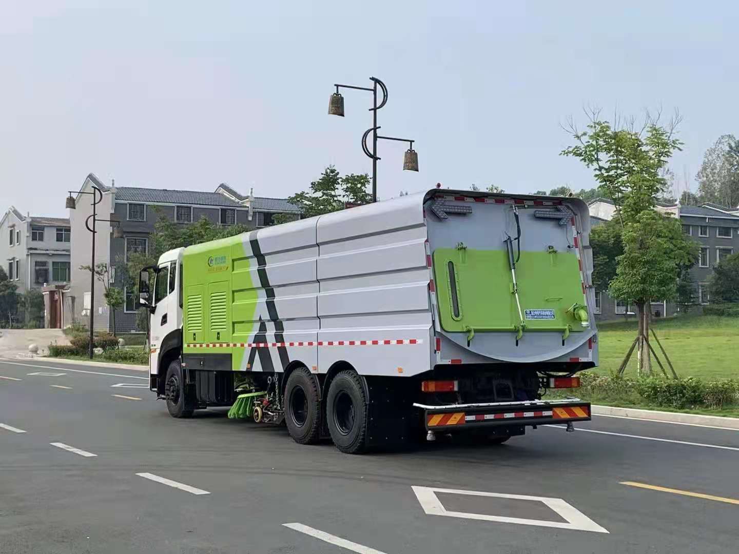 1.该车专用装置由清扫装置,抽吸装置,垃圾箱及冲水系统等组合而成,主要用于路面洗扫作业;2.随底盘选装驾驶室;3.整车长/前悬/轴距/后悬对应关系为(mm):9600/1480(1500)/4350+1350/2420(2400),9850/1480(1500)/4600+1350/2420(2400),10600/1480(1500)/5350+1350/2420(2400);4.侧防护由专用装置扫刷代替,后下部防护与车架采用焊接连接,材质为Q235A碳钢,后部防护断面尺寸(mm):280×60,后部防护离地高度(mm):400;5.ABS型号/生产厂家:3631010-C2000/东科克诺尔商用车制动系统(十堰)有限公司,ABS 8/东科克诺尔商用车制动系统(十堰)有限公司,4460046450/威伯科汽车控制系统(中国)有限公司. |