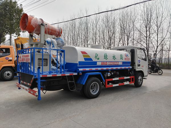 东风多利卡多功能抑尘车——是集喷雾、洒水等多种功能为一体的车型,有效减少了对工作环境的二次污染。多功能抑尘车高压水泵喷出的水雾最远射程达40米,有效射程25米,覆盖面积1万平方米,水罐容积5立方米,可持续工作5-8小时以上,对治理PM2.5及扬尘污染有明显作用。此外,该款喷雾抑尘车还具有远程遥控功能,产品可以广泛用于港口、钢铁、煤炭、矿业以及煤化工等行业.