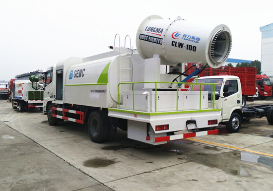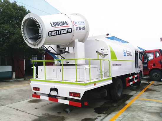 东风天锦多功能抑尘车——是集喷雾、洒水等多种功能为一体的车型,有效减少了对工作环境的二次污染。多功能抑尘车高压水泵喷出的水雾最远射程达100米,有效射程80米,覆盖面积1.5万平方米,水罐容积8.5立方米,可持续工作5-8小时以上,对治理PM2.5及扬尘污染有明显作用。此外,该款喷雾抑尘车还具有远程遥控功能,产品可以广泛用于港口、钢铁、煤炭、矿业以及煤化工等行业.